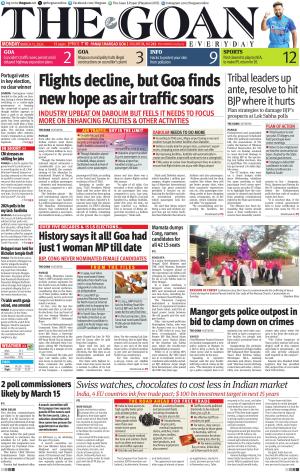 log on to thegoan.net @thegoanonline MONDAY MARCH 11, 2024 GOA LISBON: Portuguese voters headed to the polls on Sunday, facing a choice between switching to a centre-right government or keeping the centre-left in power, although neither appears to have a path to an outright majority. The far-right Chega party has been growing in clout and could play a kingmaker role in post-election talks. The election comes four months after Antonio Costa’s resignation as prime minister over corruption allegations. >> See pg 7 IN SHORT >> CM stresses on skilling for jobs PANAJI:In a bid to explain the government’s predicament in providing jobs to all, Chief Minister Pramod Sawant on Sunday stressed on the need to upskill to create human resource that matches industry’s needs and gain employment.”It is not possible for the government to give everyone jobs. So it is important to skill yourself”, he said. >> See pg 3 2024 polls to be my last: Sardinha MARGAO: Announcing that the 2024 Lok Sabha election will be his last poll in his political career spanning over four decades, sitting South Goa MP Francisco Sardinha on Sunday called for support for his candidature if the Congress nominates him for the South Goa seat. >> See pg 2 Belagavi man held for Bicholim temple theft PANAJI: The Bicholim police have arrested a Belagavi-native for allegedly stealing a donation box containing cash from Shirodkar Kulswami temple, Mulgao Bicholim. President of Shri Dev Ravalnath Mahalaxmi Devastan Mulgao Radhakrishna Ghodge had lodged a complaint alleging that unknown person/s had stolen the metal donation box. `4 lakh worth ganja seized, one arrested PANAJI: In yet another seizure of narcotics in the State, Crime Branch sleuths arrested an Odisha native with ganja worth Rs 4 lakh from Margao. Sleuths swooped down on the accused a 28-year-old man and seized the contraband which weighed 4 kgs. WEATHER >> Max: 32 C Min: 23 C Humidity: 75% TIDES Low: High: 05.26 11.39 17.36 23.51 The Goan E-Paper (Playstore/IOS) 12 pages PRICE ` 10 PANAJI MARGAO GOA VOLUME IX, NO.263 Instagram.com/thegoanonline RNI: GOAENG/2015/65729 3 2 9 Flights decline, but Goa finds new hope as air traffic soars Cuncolim’s traffic woes persist amid delayed highway expansion plans Portugal votes in key election, no clear winner Facebook.com/thegoan GOA INFO Mapusa municipality halts illegal constructions on councillor’s plaint Hacks to protect your skin from pollution SPORTS Pant cleared to play by NCA, to make IPL return for DC INDUSTRY UPBEAT ON DABOLIM BUT FEELS IT NEEDS TO FOCUS MORE ON ENHANCING FACILITIES & OTHER ACTIVITIES AIR TRAFFIC: SKY IS THE LIMIT THE GOAN I NETWORK PANAJI Even after the active fleet of Indian carriers went down and decline in charter flights, Goa’s air traffic recorded a jump of three million in 202324 compared to the previous period. Though the Dabolim International airport witnessed a considerable 15-20 per cent drop in footfall, the commissioning of the Manohar International Airport at Mopa, facilitated overall arrival of around 11 million passengers -- domestic and international, this year, compared to 7 million in 2023. The Dabolim airport -- the sole international airport till January 2023-- had handled 8.4 million passengers in 2022. The Manohar International Airport that commenced its operation almost a year back, has handled a total 4.4 million Despite hiccups and decline in airlines, Goa records 3 mn jump in air traffic footfall compared to last year Though Dabolim airport witnessed 15-20% drop in footfall, Mopa airport facilitated overall arrival of around 11 mn passengers compared to 7 mn in 2023 Dabolim airport handled 8.4 mn passengers in 2022 Mopa airport has handled a total 4.4 mn passengers till date passengers till date, according to the Travel and Tourism Association of Goa (TTAG). Speaking to media persons, TTAG President Nilesh Shah said the active fleet of Indian carriers has been going down since last year, driven by three airlines. SpiceJet’s financial woes kept the planes grounded, Go FIRST shutting operations in May and several aircraft of IndiGo remaining on the ground due to engine issues and also there was a drop in charter flights arrival this season. “In spite of all odds, Goa recorded a three million rise in air passengers this year, compared to 2023. Last year, by the end of March, Goa had handled 8.4 million footfalls, while this year, till date, we have touched 11.4 million. This is because of Mopa airport that recorded 4.4 million passengers,” Shah said. OVER FIVE DECADES & 15 LS ELECTIONS… History says it all! Goa had just 1 woman MP till date BJP, CONG NEVER NOMINATED FEMALE CANDIDATES FROM THE FILES THE GOAN I NETWORK PANAJI The ruling Bharatiya Janata Party’s (BJP) strategic move to include woman aspirants for the South Goa Lok Sabha seat has raised several eyebrows, considering that in the history of State politics neither the saffron party nor its arch rival Congress ever fielded or nominated a woman. In fact, over the last five decades and after 15 Lok Sabha elections, Goa can boast of just one woman Member of Parliament (MP) -- Sanyogita Rane. It was the Maharashtrawadi Gomantak Party (MGP) who gave Goa its first and sole (till now) MP. Rane, a first-time contestant, was elected as the MP from North Goa in January 1980. She defeated then Congress sitting MP Purshottam Kakodkar by a margin of over 27,500 votes. She contested the 1984 and 1991 Lok Sabha polls, but was never re-elected. In 1984, Rane contested the parliamentary seat as a candidate of Goa Congress -- a regional In 1999, Goa Vikas Party nominated Sweta Akhadkar from North Goa and in 2019 Aishwarya Salgaonkar contested as an Independent In 2009 NCP approached Nirmala Sawant for North Goa but internal politics led to dropping her name at the last minute In South Goa, Anupama Naik contested as an Independent candidate in 1998 and Auda Viegas was a UGDP candidate in 2004 party floated by late Dr Wilfr